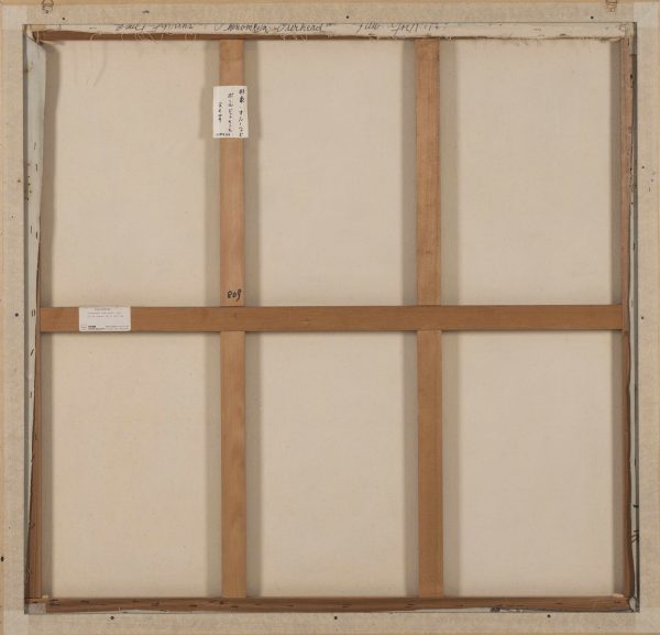 L’opera è in condizioni perfette, firmata con acrilico bianco su fondo bianco in basso a destra, sulla tela in alto ci sono la firma, il titolo e l’anno.